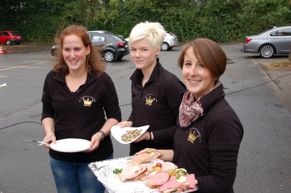 Throndamen beim Schnittchenverkauf
